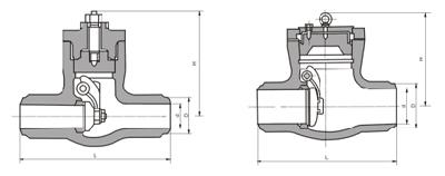 H64Y тип 1500 (Lb) ~ 2500 (Lb) високотемпературен възвратен клапан за челно заваряване за Class1500 ~ 2500Lb, работна температура -29 ~ 570 ℃ петролни, химически, топлоелектрически централи и други условия на тръбопровода.